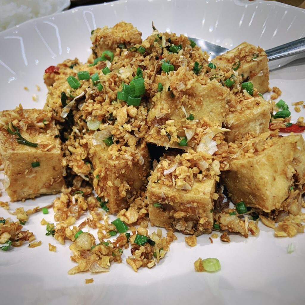 Karttaa tutkiessani löydän sattumalta kävelymatkan päässä sijaitsevan Jyak & Lymin, joka mainostaa olevansa ”Nyonya cuisine”. Nopean googlauksen tuloksena sain selville siitä käytettävän myös nimeä Peranakan cuisine ja tarkoittavan jonkinlaista malesialaisen, indonesialaisen ja kiinalaisen keittiön fuusiota. Jyak & Lymin listalta löytyy lukuisia annoksia merkinnällä ”Vegan option”. Alleviivattakoon, että siinä todellakin käytettiin termiä ”vegan”, mitä ei täällä tähän mennessä ollut kovin usein näkynyt.