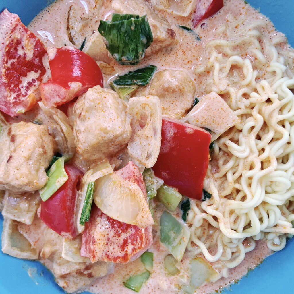 Majoitusta lähin ruokakauppa oli ihan vieressä sijaitseva 7 Eleven. Kuten arvata saattaa, ei sen vegaanituotevalikoima ollut kovin kummoinen. Syömisiä sieltä tarttui mukaan ainoastaan paketti pikanuudeleita pikahatälounaaksi, jonka lisäksi tarjolla olisi ollut lähinnä sipsejä ja pähkinöitä. Tofua yritin sieltä etsiä mutta ei löytynyt.