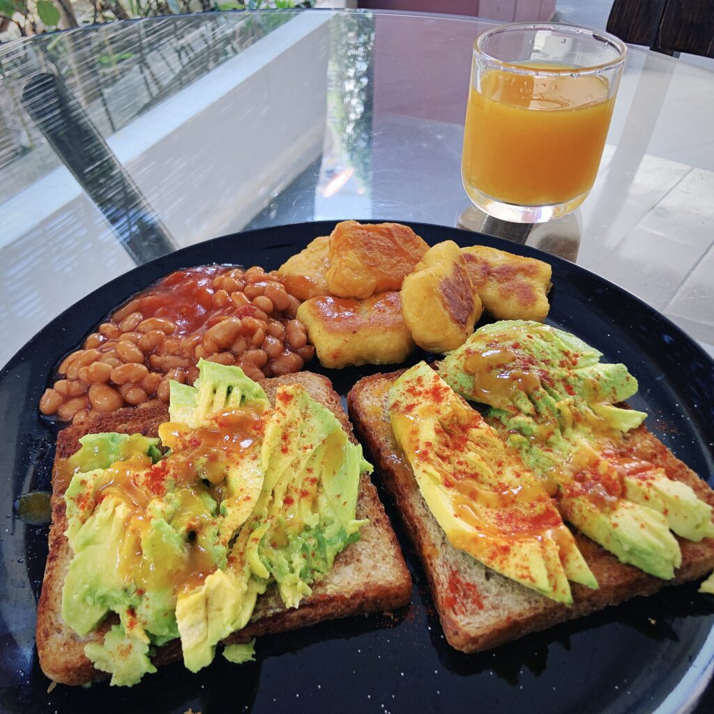 Seuraavana päivänä laitoin aamupalalounaaksi paitsi erinomaista paikallista avokadoa niin myös niitä ostamiani vegenuggetteja. Hyvä tuote tämäkin, maistuvat ihan nuggeteilta!
