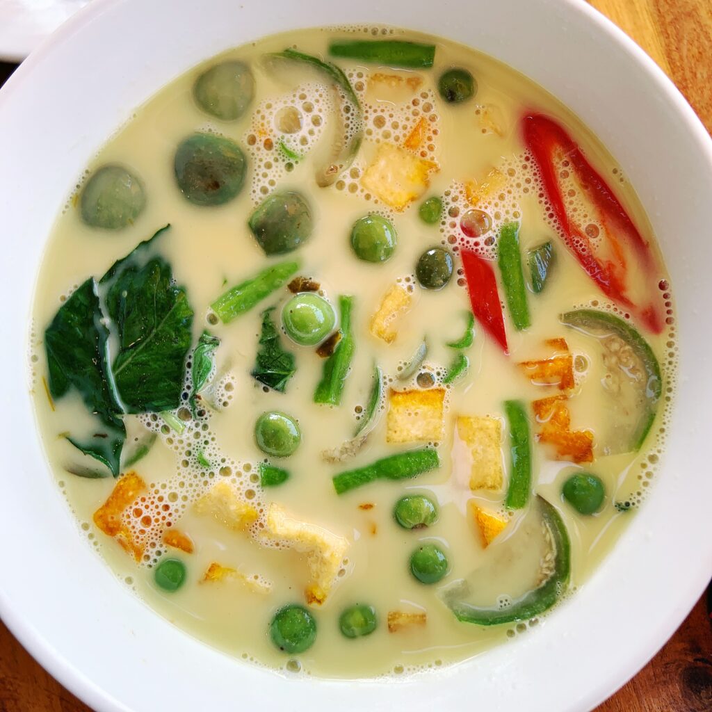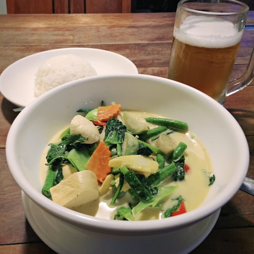 Nautin siis seuraavatkin ateriat samaisessa DuLay Koh Larnissa. Seuraavalla kerralla söin paistetut nuudelit ja vaihdoin taas munan tofuun. Vaikka tämäkään annos ei hirveän iso ollut niin tällä kertaa tofua oli ihan eri lailla kun ensimmäisenä päivänä syömässäni pad thaissa. Viimeiseksi päivälliseksi tilasin vihreän curryn, johon pyysin lisäksi tofua ja lisukkeeksi riisiä. Tämäkin annos oli maultaan mitä mainioin ja oli kooltaan selkeästi edellisiä suurempi. Hintakin toki oli hieman kovempi, mutta eipä se 170 bahtia (noin 4,50 €) silti mitenkään kalliilta tuntunut.