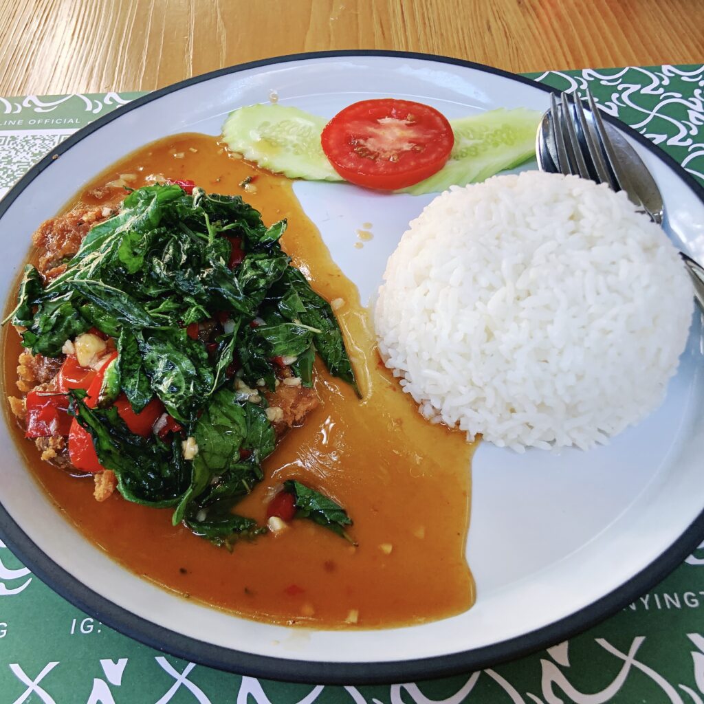 Majoitukseni liepeiltä Tawaen Beachiltä ei valitettavasti oikeastaan muita varteenotettavia ravintoloita löytynytkään. Kaikkien menut olivat pullollaan merenelävää ja lihaa. Joistain löyty yksi tai kaksi kasvisvaihtoehtoa, jotka olivat yleensä salaatti ja stir fried -kasvikset, ilman mitään kunnollista proteiininlähdettä.
