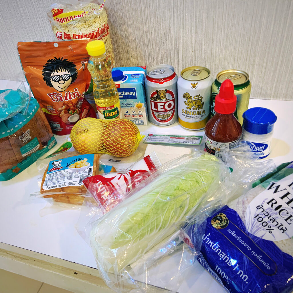 Ruoka maksoi kaupassa suurin piirtein saman verran ja joiltain osin jopa enemmän kuin Suomessa. Esimerkiksi litran purkki tuoremehua maksoi 75 bahtia (noin 2 €), punainen paprika 60 bahtia (noin 1,60 €), 150 g tofua 39 bahtia (noin 1 €), purkki valkoisia papuja tomaattikastikkeessa 59 bahtia (noin 1,60 €) ja purkki kikherneitä 75 bahtia (noin 2 €). Ero tuontitavaran ja paikallisen välillä oli aika selvä, paikalliset tuotteet (joita pyrin suosimaan aina kun mahdollista) ovat toki halvempia. Esimerkkituotteista pavut ja kirkherneet olivat tuontitavaraa, muut paikallisia tuotteita. Torilta kasviksia sai huomattavasti edullisemmin.