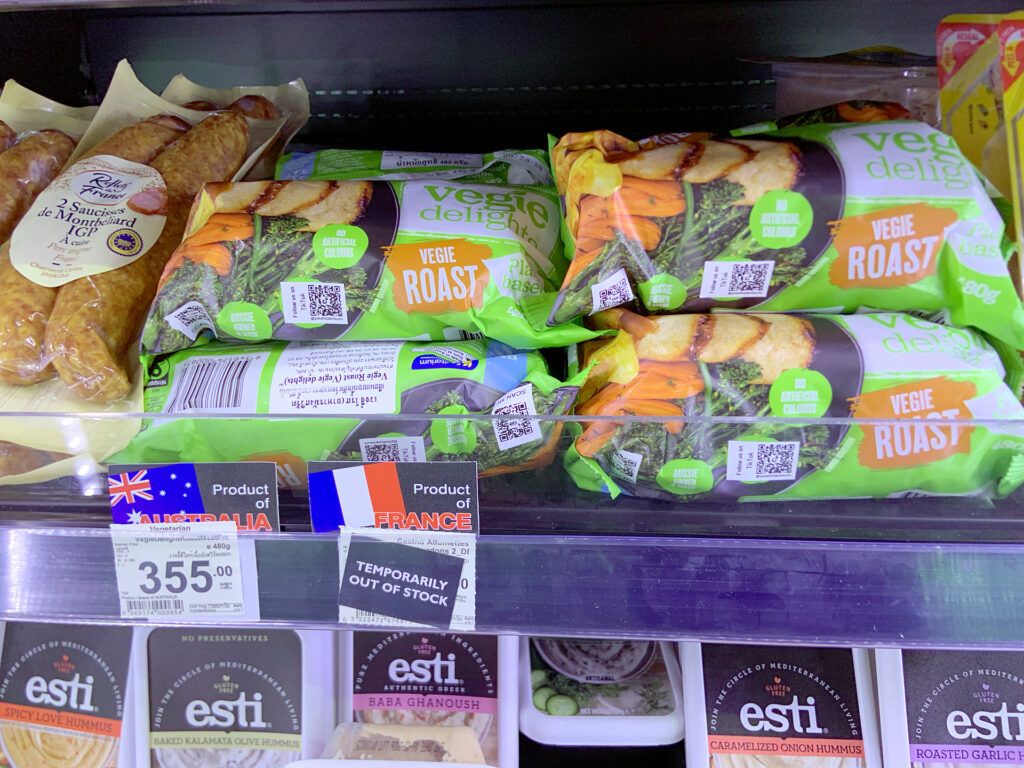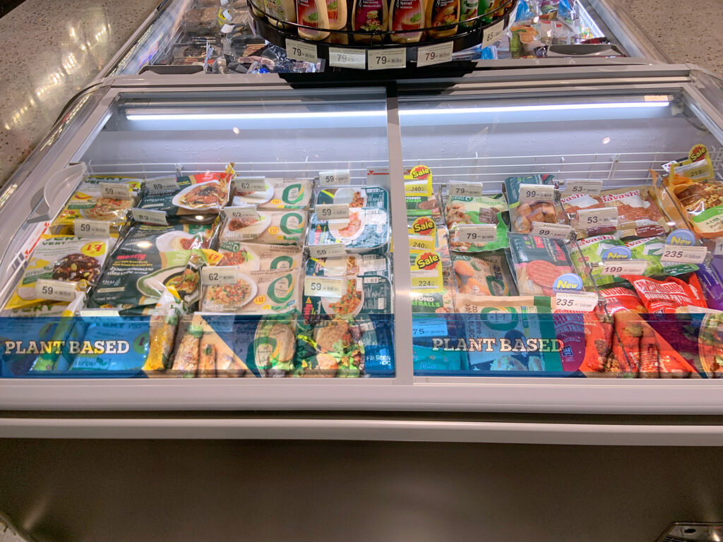 Päätin olla menemättä tänään ravintolaan ja söin päivälliseksi edellisen aamun currynjämiä. Illan suunnitelma on käydä katsastamassa seuraava isompi marketti, vajaan kahden kilometrin päässä oleva Tops Food Hall. Sekin sijaitsi isossa kauppakeskuksessa, Central Parkissa, joka sai Vantaan Jumbon tuntumaan lähinnä R-Kioskilta. Kauppa oli hyvin saman tyyppinen kuin Mitsukoshi Depachika missä kävin aiemmin, mutta valikoima oli selkeästi parempi ja hinnat halvemmat. Sieltä löytyi jopa oma pieni ”Plant based” -pakastinosasto, jossa oli paikallisten valmisruokien ohella esimerkiki Beyond Meatin tuotteita sekä parinkin minulle ennestään tuntemattomien merkkien burgeripihvejä. Myös kylmäosastolta löytyi vegaanisia tuotteita kuten paistia (mitä ilmeisimmin seitania) ja makkaroita.